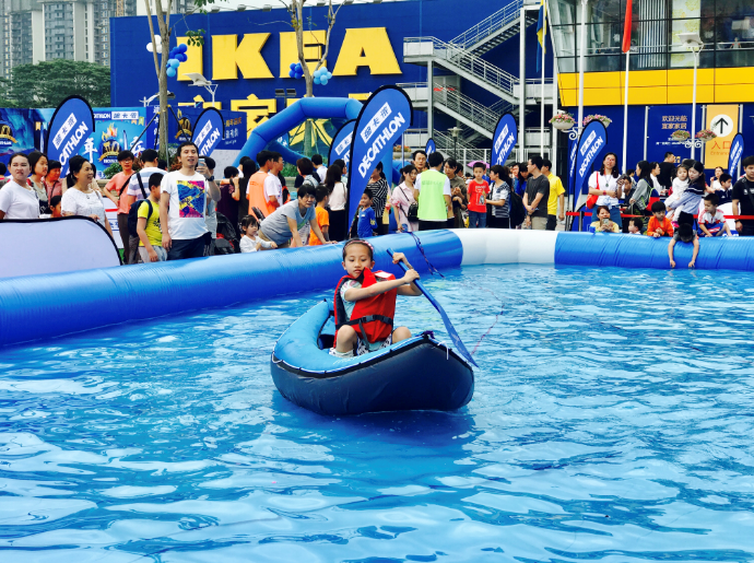 記者在現(xiàn)場看到,迪卡儂在外廣場準備了攀巖、籃球、高爾夫、皮劃艇、平衡車等諸多運動項目供市民體驗。不少市民更是帶著孩子們在各項目競賽,玩得不亦樂乎。據(jù)了解,該活動僅在五一期間開放。