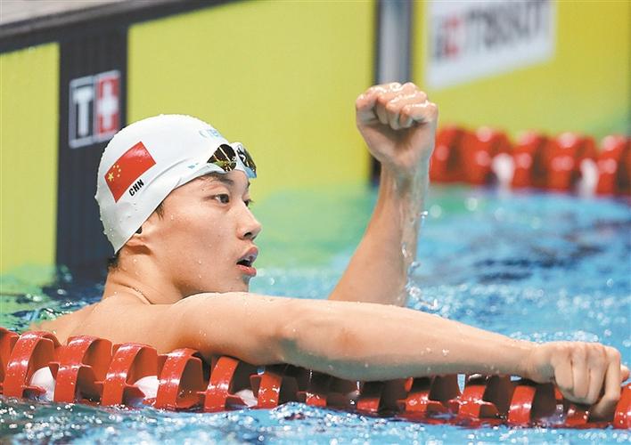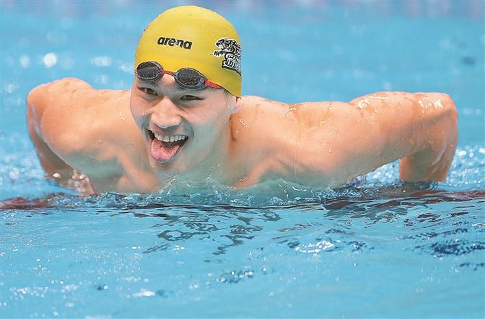 昨日,在第18屆亞運(yùn)會(huì)男子200米個(gè)人混合泳決賽中,中國(guó)選手汪順后來(lái)居上,奪得冠軍。