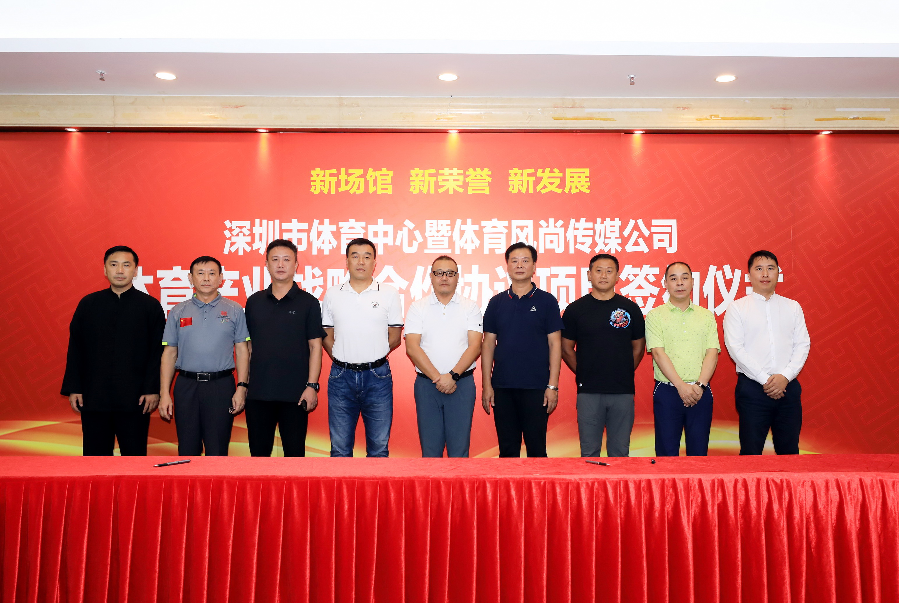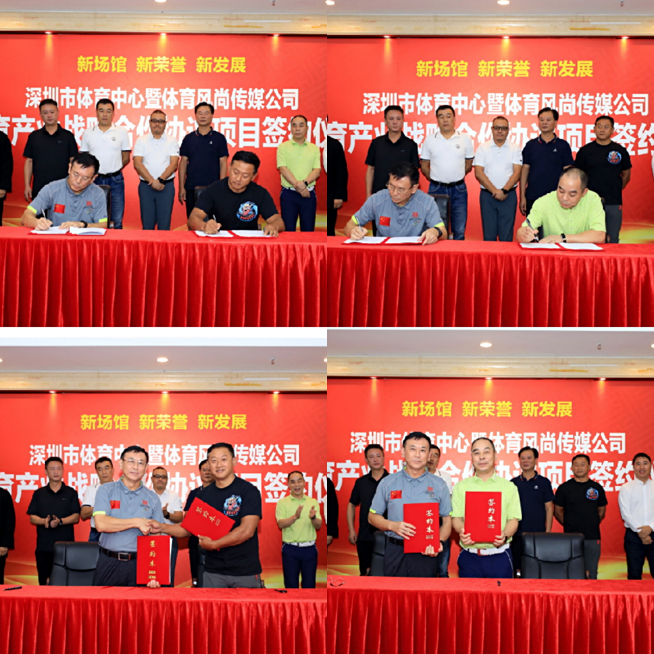 10月24日下午,由市體育中心主辦,市體育中心體育風(fēng)尚傳媒公司承辦的“‘新場(chǎng)館、新榮譽(yù)、新發(fā)展’深圳市體育中心暨體育風(fēng)尚傳媒公司體育產(chǎn)業(yè)戰(zhàn)略合作協(xié)議項(xiàng)目”簽約儀式在深圳市體育中心體育場(chǎng)新聞發(fā)布廳舉行。
