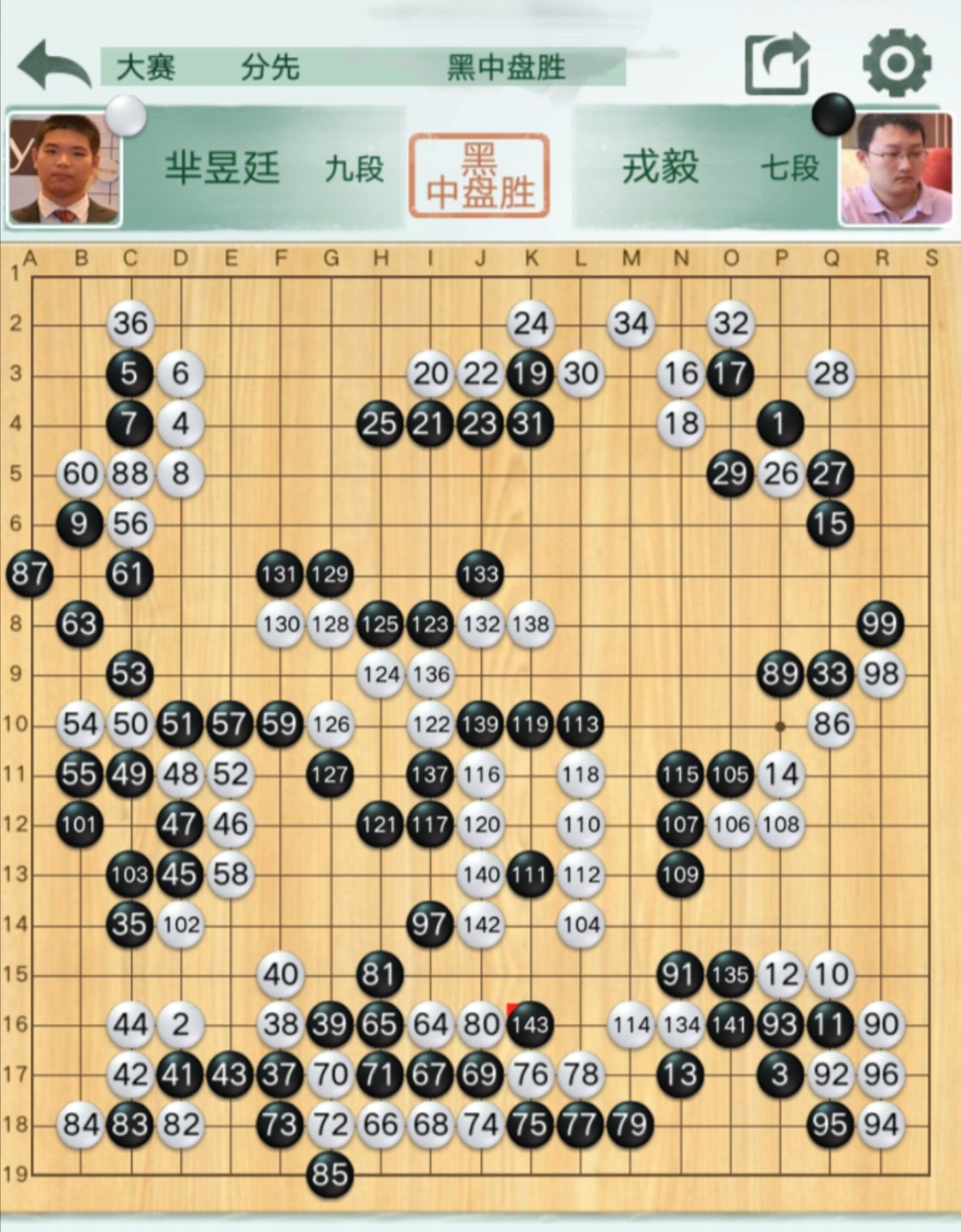 三臺:戎毅七段執(zhí)黑(勝)羋昱廷九段