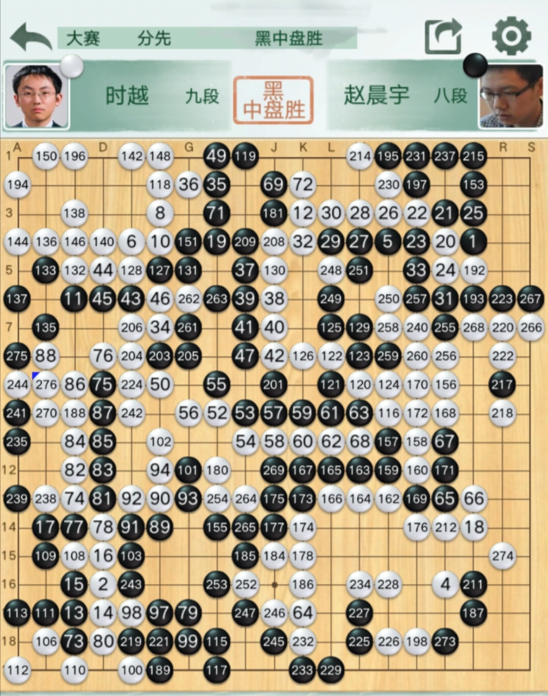 二臺(主將):時越九段執(zhí)白(負(fù))趙晨宇八段