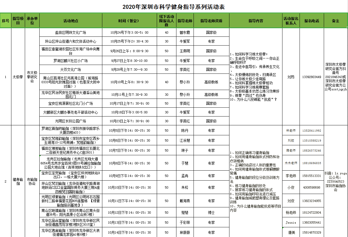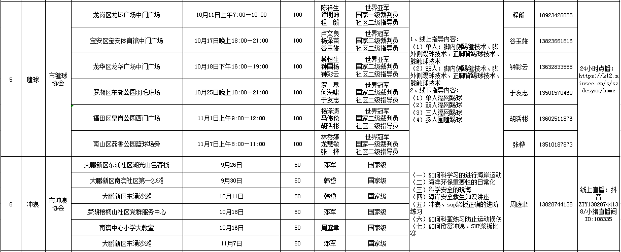 “科學(xué)健身指導(dǎo)活動(dòng)”由深圳市文化廣電旅游體育局主辦,旨在通過分批、分點(diǎn)等方式,在做好疫情防控的同時(shí),針對不同人群進(jìn)行戶外健身運(yùn)動(dòng)個(gè)性化指導(dǎo)服務(wù),助力全市煥發(fā)新活力,促進(jìn)全民健身高質(zhì)量發(fā)展。活動(dòng)自8月2日啟動(dòng)以來,已有眾多一線社會(huì)體育指導(dǎo)員和體育產(chǎn)業(yè)專家通過深入社區(qū)現(xiàn)場教學(xué)、錄制視頻等方式,向廣大市民宣傳、講解科學(xué)健身的知識(shí)和方法。