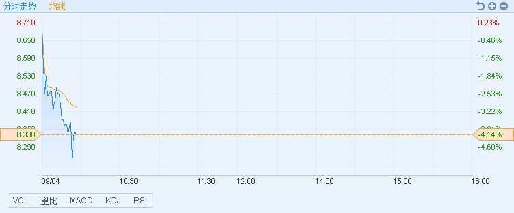 截至11時(shí)17分,濰柴動(dòng)力(02338)跌4.14%,報(bào)價(jià)8.26港元,成交額9590.57萬。(王岳川)