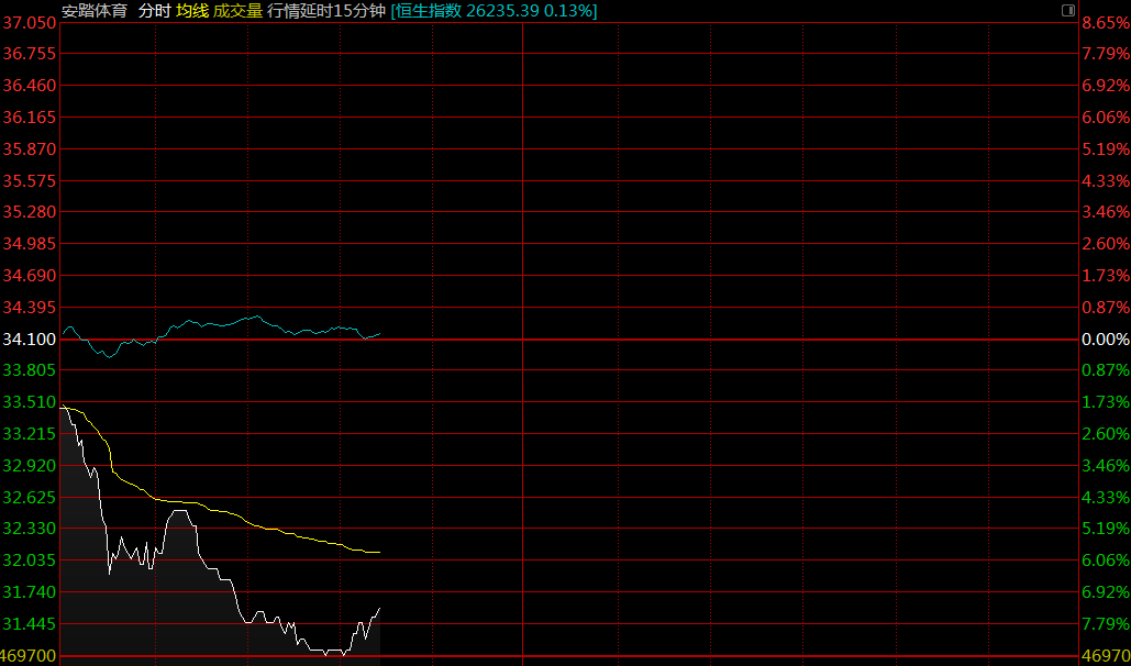 智通財經APP獲悉,安踏體育(02020)盤中跌至31.2港元,創(chuàng)年內新低,截至10時50分,跌8.5%,報價31.2港元,成交額2.28億。