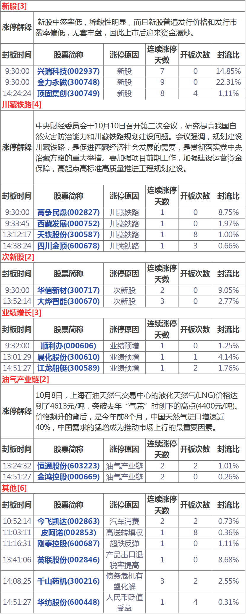 漲停分析:滬指跌破2600點川藏鐵路個股逆市走強(qiáng)(10月11日)