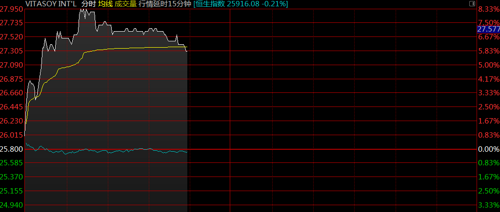 中期業(yè)績(jī)超預(yù)期維他奶國(guó)際(00345)續(xù)漲6.59%