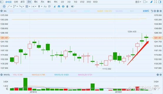 受此影響,港股家電股紛紛看漲,截止發(fā)稿,港股家電板塊已經(jīng)連漲數(shù)日,達(dá)到1262.5,三日漲幅超過7個(gè)點(diǎn)。