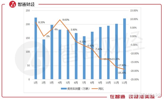 再具體一點(diǎn),根據(jù)智通財(cái)經(jīng)APP的統(tǒng)計(jì),2018年乘用車全年累計(jì)銷量2235萬輛,同比下降5.8%,其中在12月份,銷量同比下滑達(dá)19.2%,連續(xù)8個(gè)月增長持續(xù)下滑,且連續(xù)6個(gè)月出現(xiàn)負(fù)增長。這說明汽車的“消化”能力已經(jīng)到了一個(gè)瓶頸。