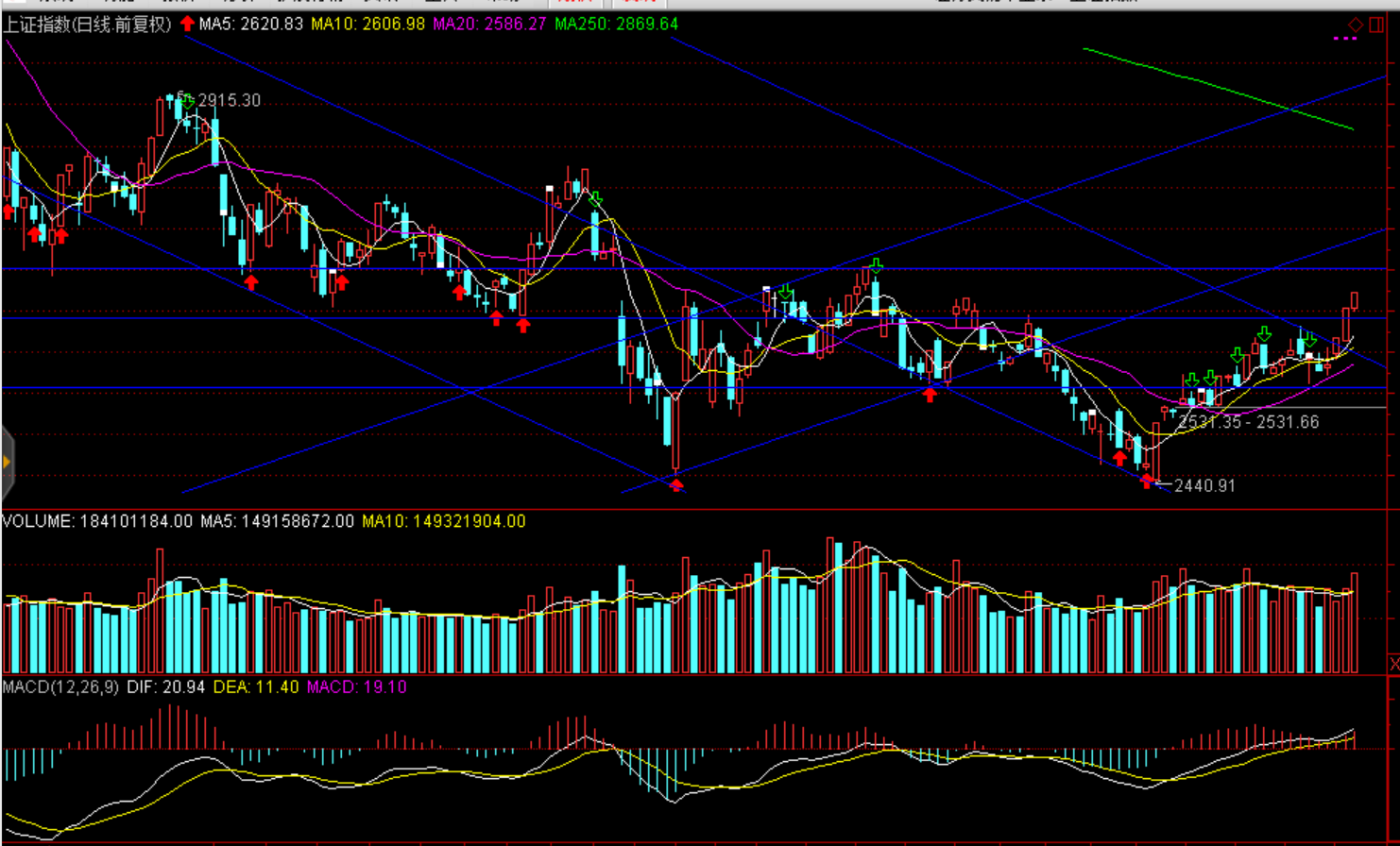 技術(shù)面:延續(xù)震蕩上行趨勢,上證50短期2570點一線、滬綜指2700點、1350點一線震蕩或?qū)⒓觿 ?/p>