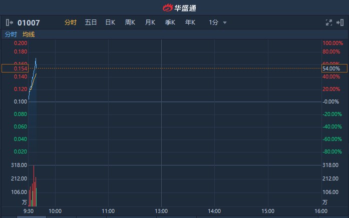 智通財(cái)經(jīng)APP獲悉,龍輝國(guó)際控股(01007)早盤受資金追捧,快速拉升,一度漲70%,截至9時(shí)38分,漲54%,報(bào)0.154港元,成交額達(dá)2218萬(wàn)港元。
