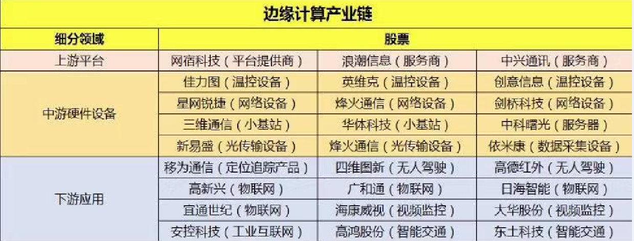 5G引入三大應(yīng)用場景,eMBB(高速移動通信)、mMTC(大規(guī)模機(jī)器通信)、URLLC(低時延高可靠),為克服傳輸網(wǎng)的性能瓶頸,邊緣計算成為5G網(wǎng)絡(luò)的核心網(wǎng)絡(luò)技術(shù)之一。5G時代,VR/AR、車聯(lián)網(wǎng)、工業(yè)互聯(lián)網(wǎng)等領(lǐng)域?qū)吘売嬎銕韯傂孕枨螅吘売嬎惝a(chǎn)業(yè)鏈發(fā)展迅猛,關(guān)鍵技術(shù)和產(chǎn)品逐步成熟。5G作為新經(jīng)濟(jì)和新科技浪潮的核心基礎(chǔ)設(shè)施,商用進(jìn)展順利,期待5G商用落地,大量新應(yīng)用蓬勃發(fā)展將推動邊緣計算產(chǎn)業(yè)鏈長期持續(xù)成長。