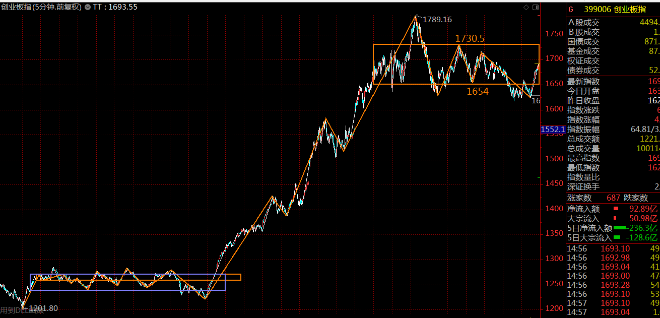 創(chuàng)業(yè)板方面,前面一段走的比較強(qiáng)勢,這里僅構(gòu)建了一個(gè)五分鐘級別的中樞,整體走勢上要強(qiáng)于主板,這里還是先看中樞級別擴(kuò)展,兩相結(jié)合,下周兩市大概率會(huì)以強(qiáng)勢震蕩、蓄勢突破為主。