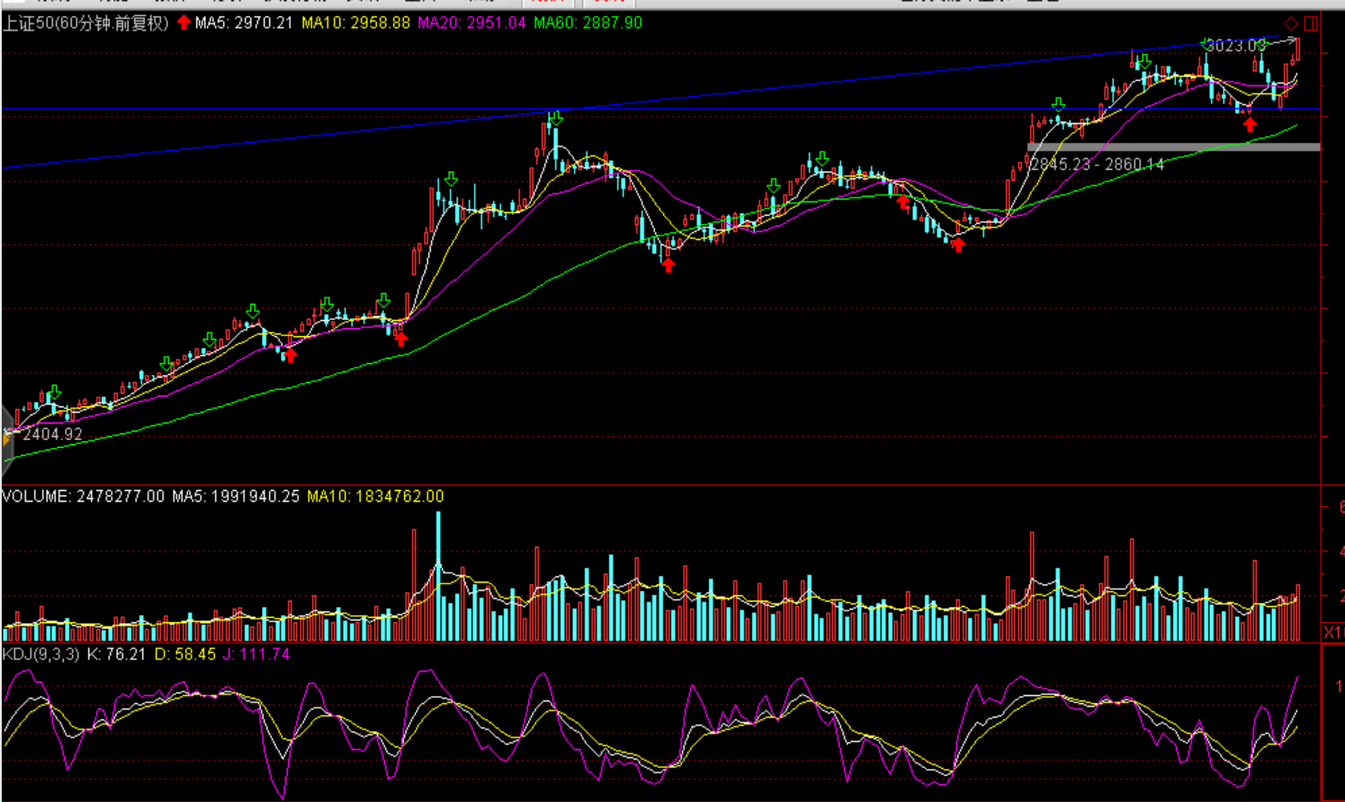 技術(shù)面:短期股強勁反彈修復調(diào)整結(jié)構(gòu),維持高位震蕩,60分鐘看上證50面臨壓力,預計今日股指沖高受阻,小陰或小陽報收。