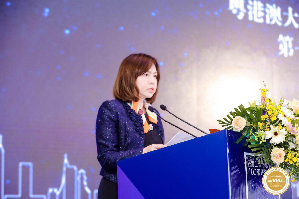 港股100強研究中心榮譽贊助人勞玉儀女士在開幕式致辭,在向出席盛會的嘉賓致以敬意的同時,勞玉儀女士強調,未來“港股100強”榜單將與粵港澳大灣區(qū)進行對接,推進內地與香港資本市場的互聯(lián)互通。