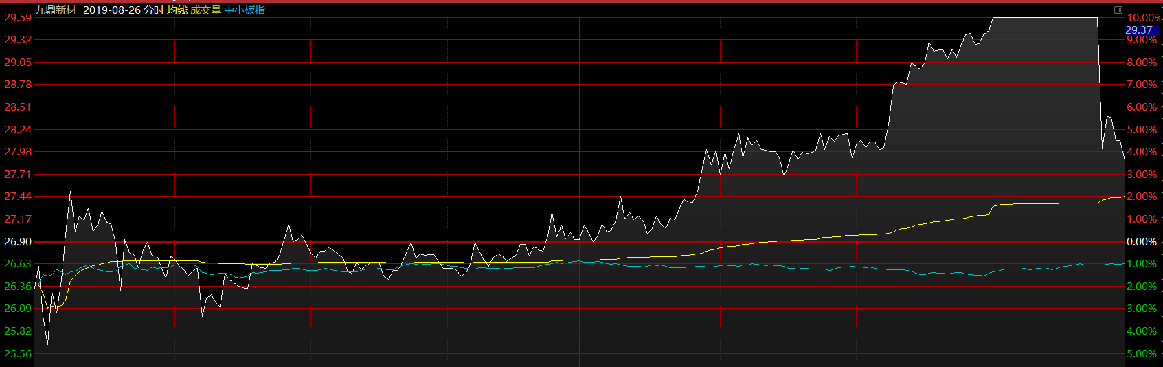 今年的市場(chǎng)有個(gè)特征,總是因?yàn)槟硞€(gè)人的一兩句話而大幅波動(dòng),好在市場(chǎng)對(duì)貿(mào)易摩擦的相關(guān)消息已逐漸變得不再敏感,消息次日市場(chǎng)跌幅也逐步減小。在周末貿(mào)易摩擦升溫消息刺激下,上周一大盤低開(kāi),但低開(kāi)幅度遠(yuǎn)小于預(yù)期,市場(chǎng)也沒(méi)有出現(xiàn)恐慌的情況。尤其是高標(biāo)股九鼎新材,在前一交易日尾盤大幅分化的情況下,周一早盤僅僅微幅低開(kāi)兩個(gè)點(diǎn),可以說(shuō)這是一個(gè)明顯的抄底信號(hào):市場(chǎng)這里跌不下去。