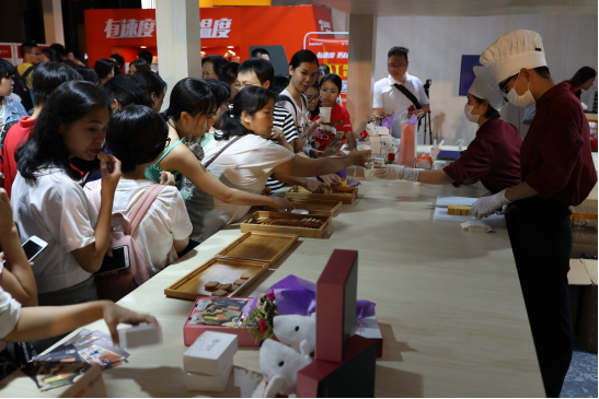 記者在快閃店的手工烘焙區(qū)看到了一塊塊手工鳳梨酥精心制作的全過程。隨著它的“出爐”,濃郁香味吸引來了不少市民圍觀。在試吃區(qū)里,市民品嘗后都紛紛贊不絕口,“好吃,真的好吃,餡料也很足!”除此之外,店內(nèi)還設(shè)置了愛的溫度、娃娃機、顏值打折AI人臉識別游戲等互動活動,也吸引了眾多市民的熱情參與和圍觀。