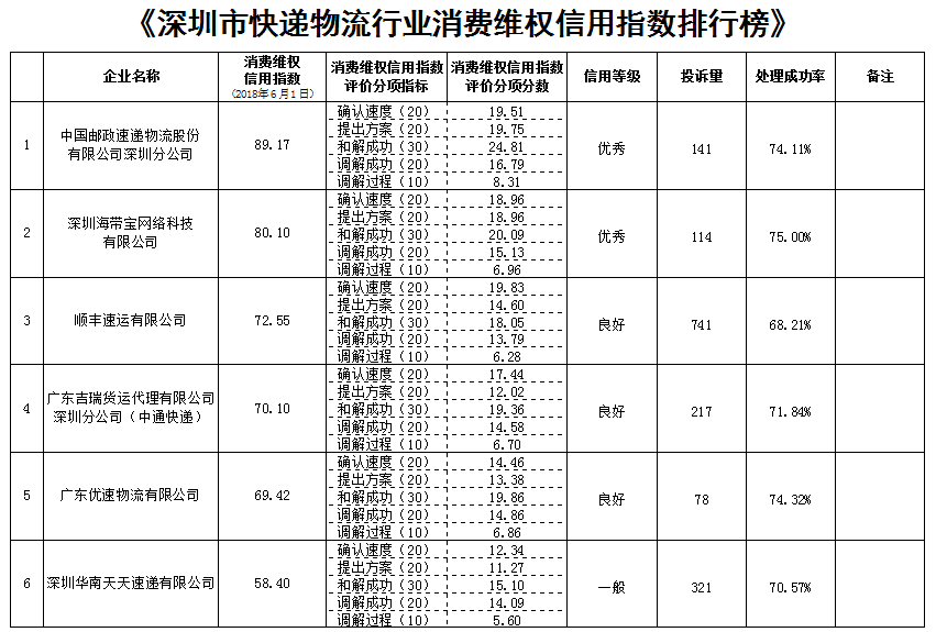 深圳新聞網(wǎng)訊 6月26日,深圳市消費(fèi)者委員會(huì)(以下簡稱“市消委會(huì)”)為加強(qiáng)對商品和服務(wù)的社會(huì)監(jiān)督,客觀公正反映經(jīng)營者的消費(fèi)投訴處理情況,發(fā)布深圳市快遞物流行業(yè)消費(fèi)維權(quán)信用指數(shù)排行榜,引導(dǎo)消費(fèi)者正確消費(fèi)。