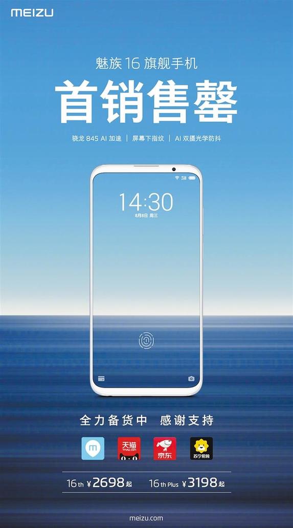 8月20日魅族16th線上線下正式開售,開售不到1秒鐘,魅族16th系列全平臺(tái)秒售罄。