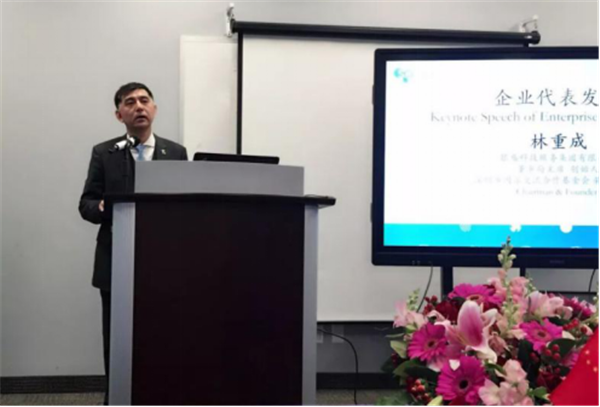 ▲深圳中小企聯(lián)會長、基金會榮譽副會長、銀盛集團董事局主席林重成演講