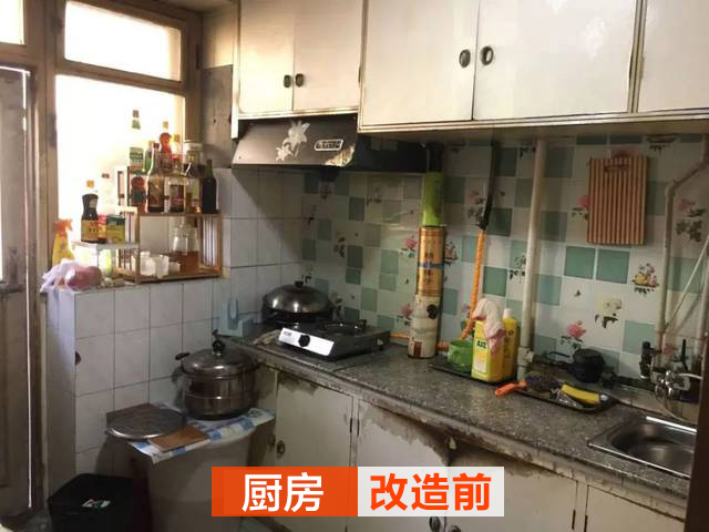 廚房完全可以用不忍直視來(lái)形容,油煙已經(jīng)把櫥柜浸黑。操作臺(tái)不僅使用起來(lái)不方便,而且與整體搭配格格不入。