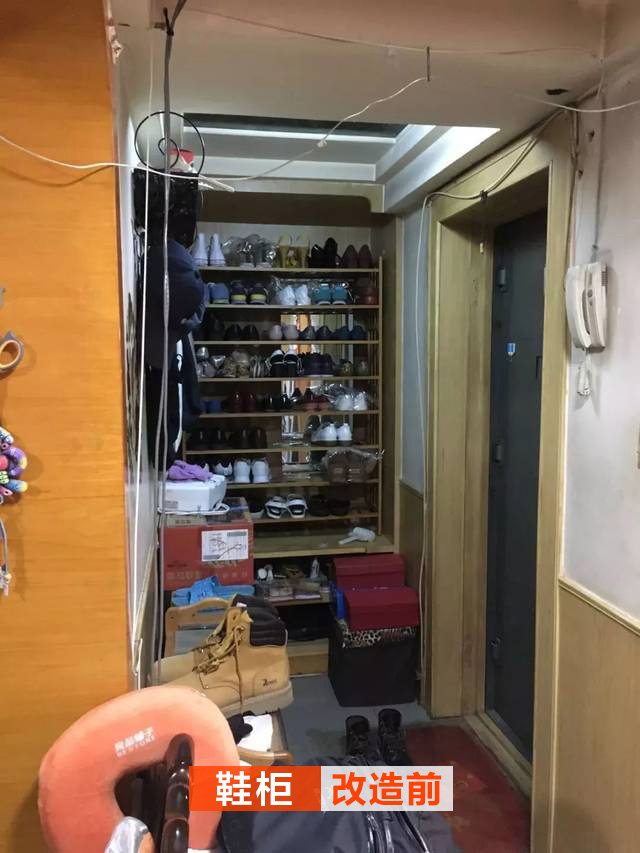 改造前的入戶(hù)亂七八糟,而且實(shí)用性很差;鞋柜已經(jīng)做到頂了,頂上的鞋子拿取非常不方便,很多的東西都直接堆在那邊。