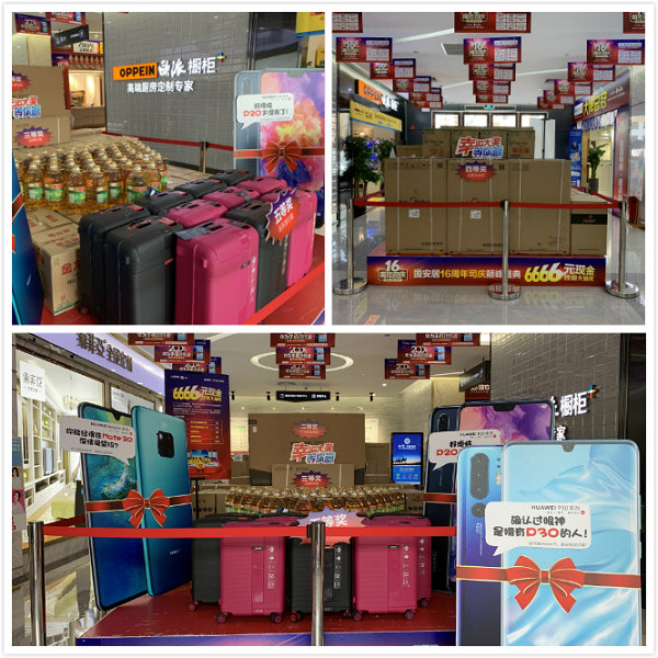 據(jù)了解,這場從6月14日持續(xù)至30日的司慶活動,國安居為業(yè)主朋友們準(zhǔn)備了六大鉅惠:1、司慶重磅獻(xiàn)豪禮,七店就送200臺華為手機(jī)!6.30當(dāng)天累計訂單(可多個品牌下定)實付滿15000元送遠(yuǎn)東旅行箱一個,實付滿80000元送華為P20一臺,實付滿150000元送華為mate20一臺,實付滿250000元送華為P30手機(jī)一臺;2、6月30日前,提前在國安居店面及微信16元搶購《司慶超抵卡》,活動當(dāng)天簽到即可尊享6重超值豪禮;3、6月14日-6月29日活動期間,顧客買單后微信分享活動,即可領(lǐng)取16-666元隨機(jī)金額現(xiàn)金紅包一個,5000個現(xiàn)金紅包等您來瓜分!還有機(jī)會贏取終極大獎華為P30哦;4、國安居16周年司慶公益義賣,驚現(xiàn)160元馬桶、160元爐灶、16元花灑、16元鞋柜……買到就是賺到!沒錯,就是這么任性;5、160萬現(xiàn)金聯(lián)單就返,6月30日活動當(dāng)天,在國安居下定3個品牌以上(每個品牌實付滿3000元),即可參與聯(lián)單返現(xiàn)活動,多買多返,上不封頂;6、終極抽6666元現(xiàn)金大獎,6.15-6.30活動期間,購物實付金額滿2000元可領(lǐng)取抽獎券一張,滿4000元領(lǐng)取兩張,以此類推。