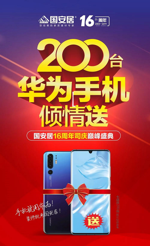 時光有限,堅持無限,國安居16年里始終如一的堅持做著一件事情:顧客至上,服務(wù)第一,誠信為本!為回報廣大家居消費者一直的厚愛,國安居深惠七店在此16周年之際,攜手旗下1000余家一線大牌舉行“16周年司慶巔峰盛惠,200臺華為手機(jī)傾情送”大型促銷活動。