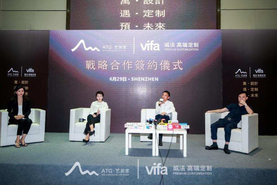 6月29日下午,ATG·藝澍家 & vifa威法戰(zhàn)略合作簽約儀式在紅星美凱龍深圳香蜜湖商場(chǎng)舉行,vifa威法董事長(zhǎng)楊煉、總經(jīng)理王超及威法高端定制核心區(qū)域代理商們悉數(shù)到場(chǎng),與ATG·藝澍家CEO張富麗、來自ATG亞太國(guó)際的設(shè)計(jì)師團(tuán)隊(duì)等就跨界合作議題展開深入的交流溝通。現(xiàn)場(chǎng)火花碰撞,在高端家裝市場(chǎng)領(lǐng)域深耕多年的雙方領(lǐng)導(dǎo)分享了對(duì)“高奢住宅定制”的理解,坦言行業(yè)痛點(diǎn),剖析行業(yè)趨勢(shì),并就當(dāng)前高奢定制市場(chǎng)發(fā)展的現(xiàn)狀以及問題展開全面探討。