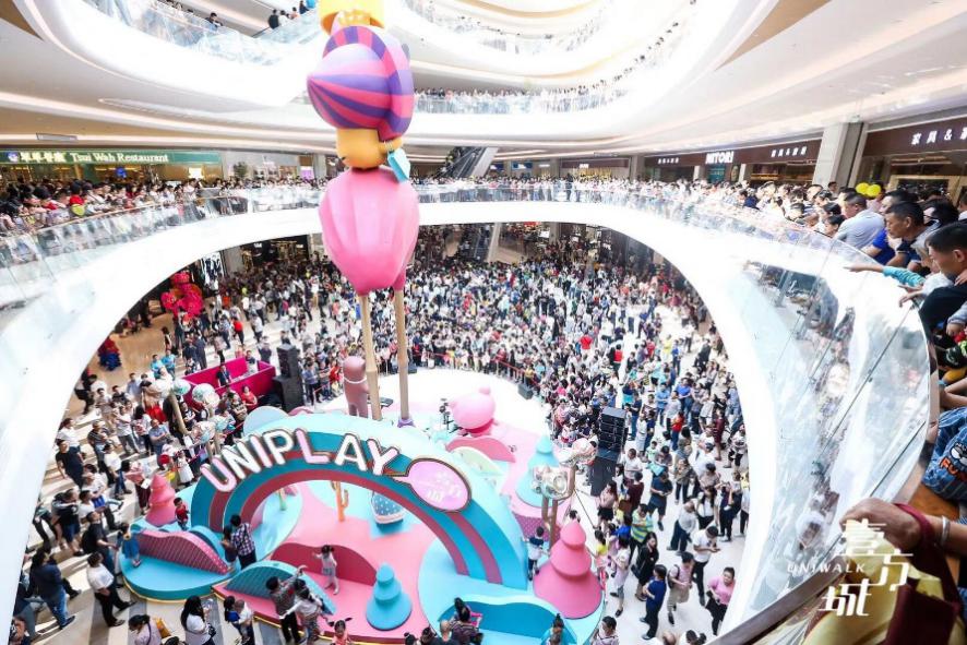 另一個(gè)是壹方城自行設(shè)計(jì)的6大自有IP——UNIPLAY家族,6個(gè)IP形象萌態(tài)可掬,受到了消費(fèi)者的普遍認(rèn)可。壹方城還通過制作公仔、帆布袋等實(shí)用IP周邊,以及與國際一線化妝品LANC?ME以及喜茶、潮宏基、來電、我是酸奶君等品牌聯(lián)名,巧妙加深與消費(fèi)者的情感鏈接,成就獨(dú)特的壹方記憶。