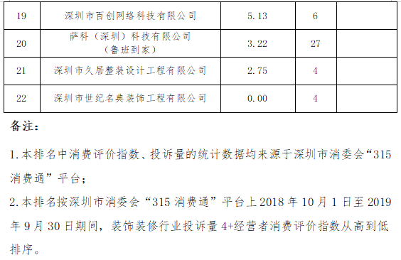 此外,本次公布的深圳市消委會裝飾裝修行業(yè)消費(fèi)評價指數(shù)排行榜中,深圳新家生活科技服務(wù)有限公司(9.00)、深圳市百創(chuàng)網(wǎng)絡(luò)科技有限公司(5.13)和薩科(深圳)科技有限公司(魯班到家)(3.22)3家經(jīng)營者未建立投訴處理便捷通道,投訴處理效率低于其他經(jīng)營者,增加了消費(fèi)者維權(quán)成本。