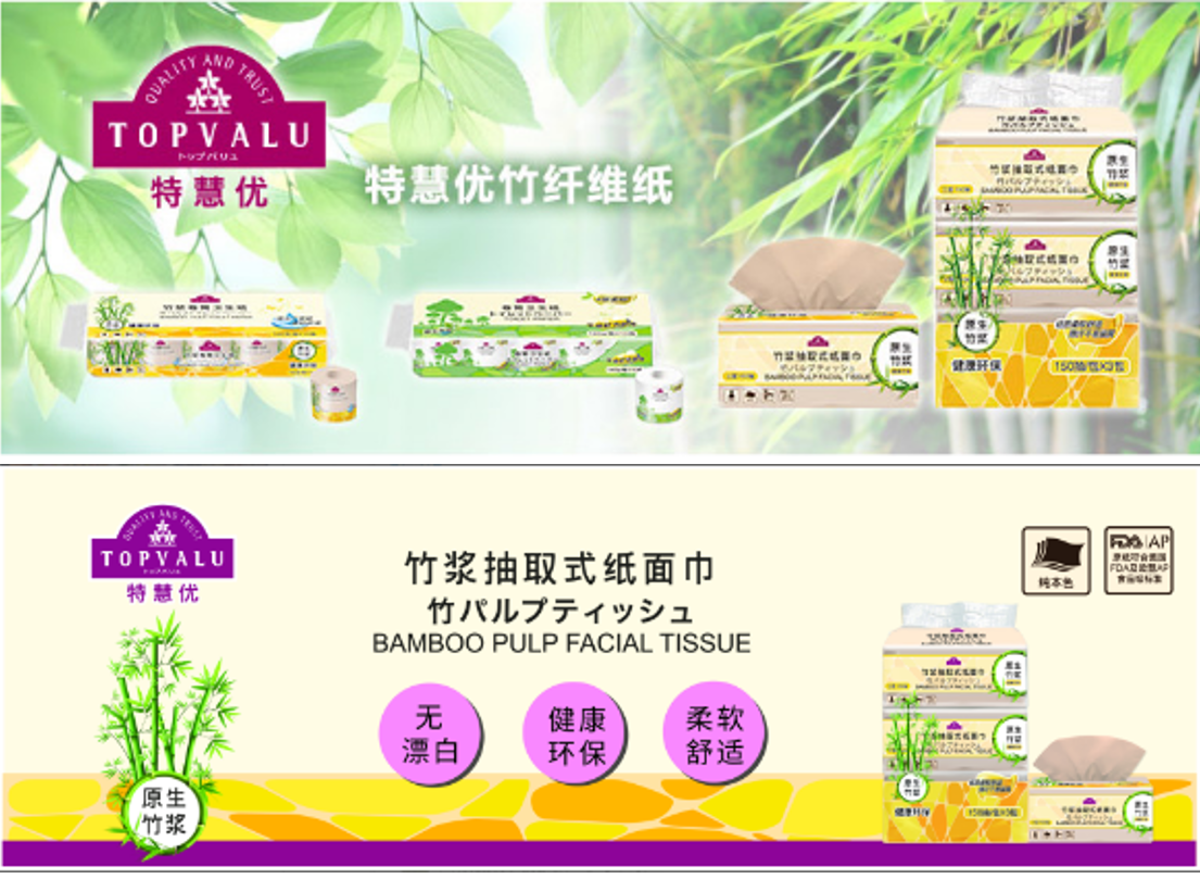 永旺始終對環(huán)境保護高度關(guān)注,開發(fā)健康、環(huán)保的、讓顧客放心使用的商品一直是永旺的目標(biāo)。正是出于這樣的考量,永旺自有品牌TOPVALU(特慧優(yōu))推出了竹漿抽取式紙面巾等系列的環(huán)境友好型商品。由于該商品做到了對環(huán)境無污染,對人體無危害,還獲得了“2018年中國零售自有品牌評選”的“綠色產(chǎn)品獎”。