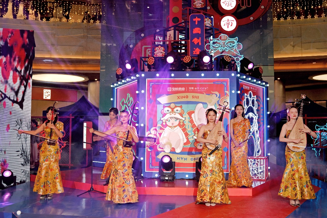 慶典當天,豐富多彩的異業(yè)活動貫穿全場,紅包雨搖一搖的現(xiàn)場互動小游戲為慶典帶來了一波又一波歡呼;街舞串燒、國潮T臺大秀、樂隊演奏、漢服快閃秀、近景魔術等精彩表演更是將現(xiàn)場氣氛不斷推向高潮。作為今年周年慶的主打形象,“國潮 IP”——南獅霸氣亮相,呆萌與喜慶的形象一出場便引爆現(xiàn)場,成為全場焦點。富有中國傳統(tǒng)文化內涵的南獅與西方潮流電音的巧妙結合,碰撞出新穎而奇妙的火花,也讓在場觀眾體驗到了一場耳目一新的視聽盛宴。