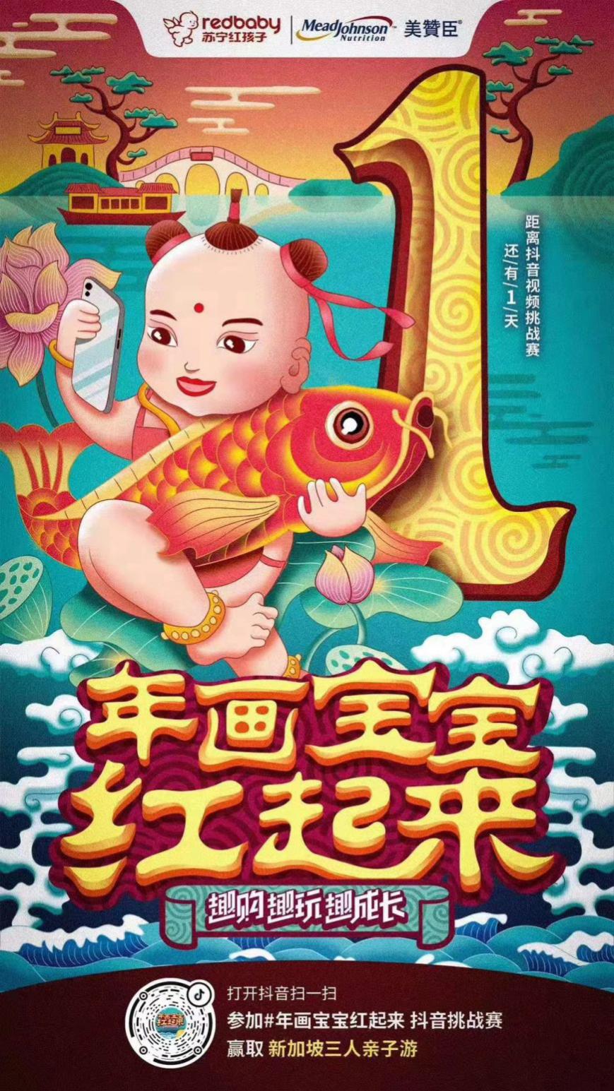 上周,蘇寧紅孩子官方發(fā)起了一場(chǎng)“年畫寶寶紅起來(lái)”的抖音挑戰(zhàn)賽活動(dòng)。12月10日-12月31日,在抖音搜索話題,使用蘇寧紅孩子專屬貼紙,讓萌娃變身年畫寶寶,發(fā)布曬娃視頻,就能參與。參與活動(dòng)就有機(jī)會(huì)贏取全家新加坡親子游大獎(jiǎng),寶萌照更有機(jī)會(huì)登上戶外大屏,紅動(dòng)全城。