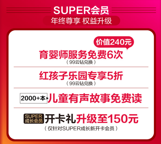 即日起,上蘇寧易購(gòu)參與蘇寧紅孩子“年終狂歡搶購(gòu)盛典”活動(dòng),10點(diǎn)、15點(diǎn)、20點(diǎn)整點(diǎn)搶2019元母嬰神券,進(jìn)入蘇寧拼購(gòu)小程序最高可領(lǐng)取8元膨脹紅包。全國(guó)近200家蘇寧紅孩子門店還推出滿30元減30元神券限量砍,99云鉆免費(fèi)兌換育嬰師服務(wù)、紅孩子樂(lè)園5折優(yōu)惠等。