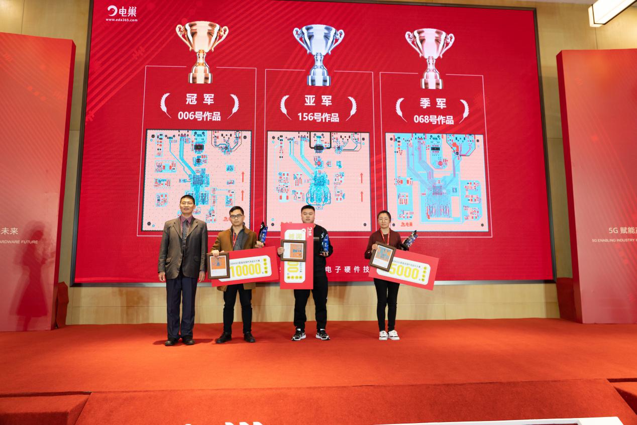 胡慶虎為EDA365首屆全國(guó)PCB設(shè)計(jì)大賽的冠亞季軍頒獎(jiǎng)