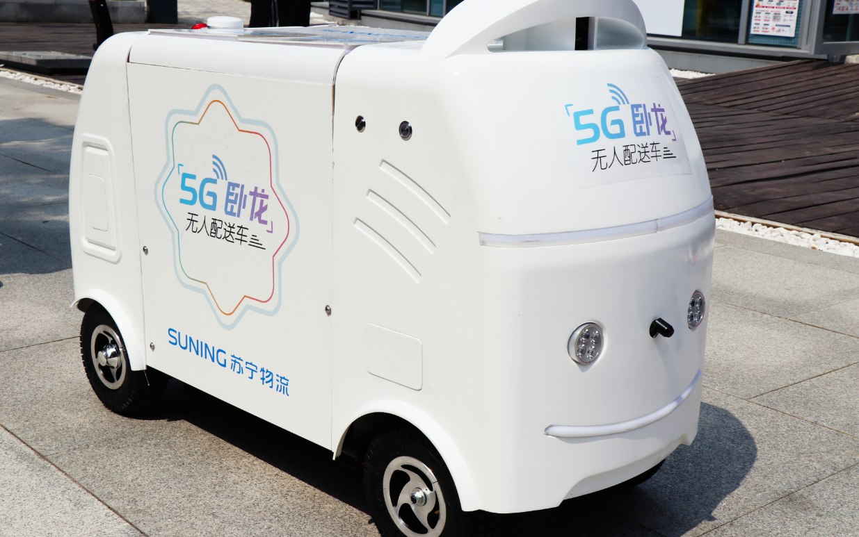 (圖:2019年8月17日,蘇寧物流5G“臥龍一號”無人配送車在南京實(shí)測成功 )