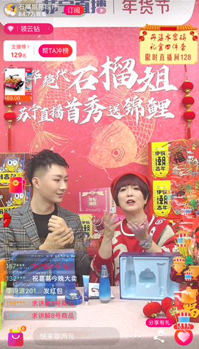 2020年伊始,“風(fēng)華絕代”的石榴姐苑瓊丹在蘇寧易購開始了新年帶貨直播首秀,為全網(wǎng)用戶推薦實用年貨,超過100萬人“圍觀”了直播,兩小時帶貨超10萬件,平均每分鐘售出800件年貨,其中最受消費者歡迎的來伊份潮吉多堅果禮盒59秒售罄,創(chuàng)下2020年明星帶貨的新記錄!