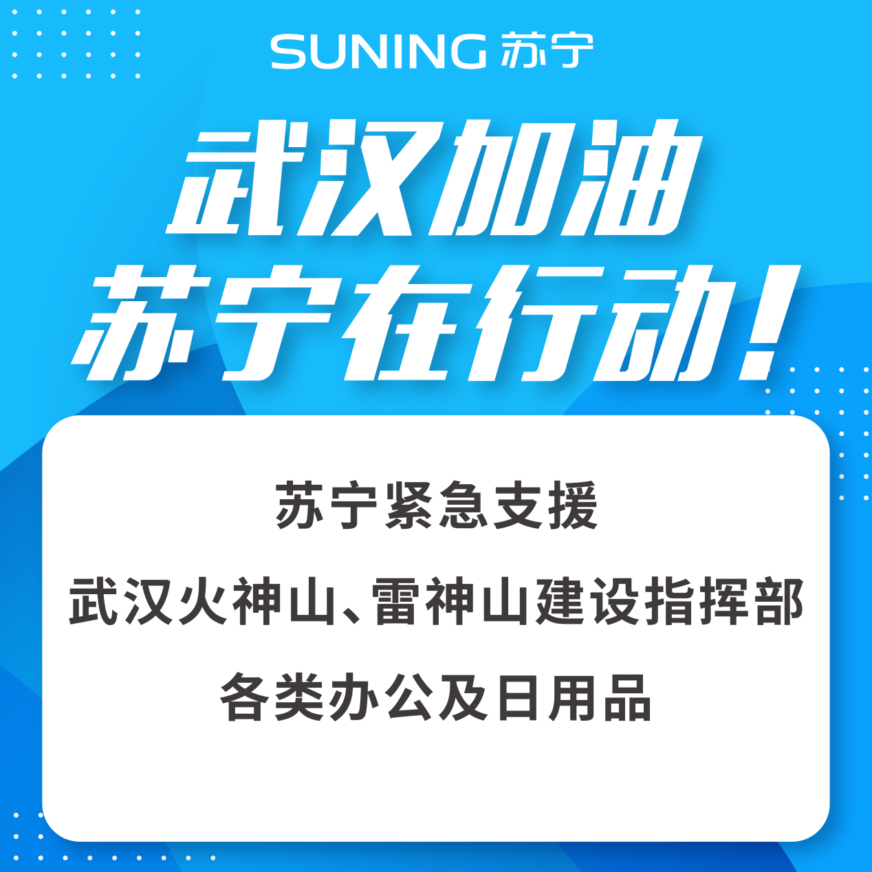 而在疫情防控一線,自春節(jié)期間肺炎疫情發(fā)酵以來,蘇寧迅速行動,在武漢組建了支援團(tuán)隊及時響應(yīng)一線需求,通過定向向武漢火神山、雷神山醫(yī)院,以及武漢和周邊地區(qū)的醫(yī)療、公安等機構(gòu)進(jìn)行捐贈,緊急支援消毒水、口罩、防護(hù)服、醫(yī)用手套、電器、電腦、日用品等一系列物資,以解疫區(qū)燃眉之急。