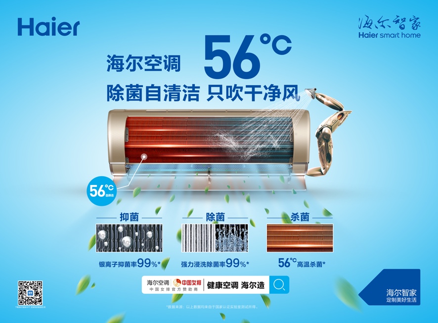 不僅如此,針對空調臟、清洗難的問題,海爾還升級了56度C除菌自清潔空調。當空調開啟自清潔后,蒸發(fā)器溫度可達56℃以上,達到除菌除塵的效果。