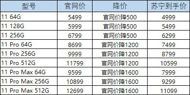 目前在蘇寧易購官網(wǎng),iPhone11 Pro Max各型號全部降價1600元,最低7999元就能入手;iPhone11 Pro降價1200元,64G版本7499元;同時,iPhone11也降了500元,最低配64G版本售價4999元。此外,iPhone XR等上一代機(jī)型也有不同程度降價力度。