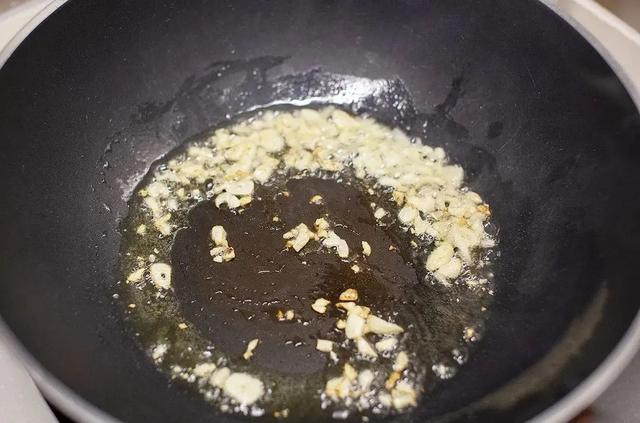 3.熱鍋下油,放入蒜頭爆香,然后倒入筍丁、臘腸丁、雪菜翻炒。