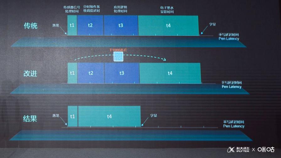 為了實(shí)現(xiàn)這個(gè)突破,智能本與E Ink原廠通力合作、聯(lián)合調(diào)優(yōu),在業(yè)界首次實(shí)現(xiàn)了墨水屏手寫處理芯片化(T1000芯片),直接將寫顯延遲中的軟件處理部分通過芯片實(shí)現(xiàn),大大的縮短了墨水屏的寫顯延遲。當(dāng)前,在咪咕訊飛智能本青春版中,寫顯延遲僅30毫秒左右。在用戶直接的主觀體驗(yàn)測試中,已經(jīng)做到了“幾乎無延遲感”、“像真紙一樣的書寫速度”。