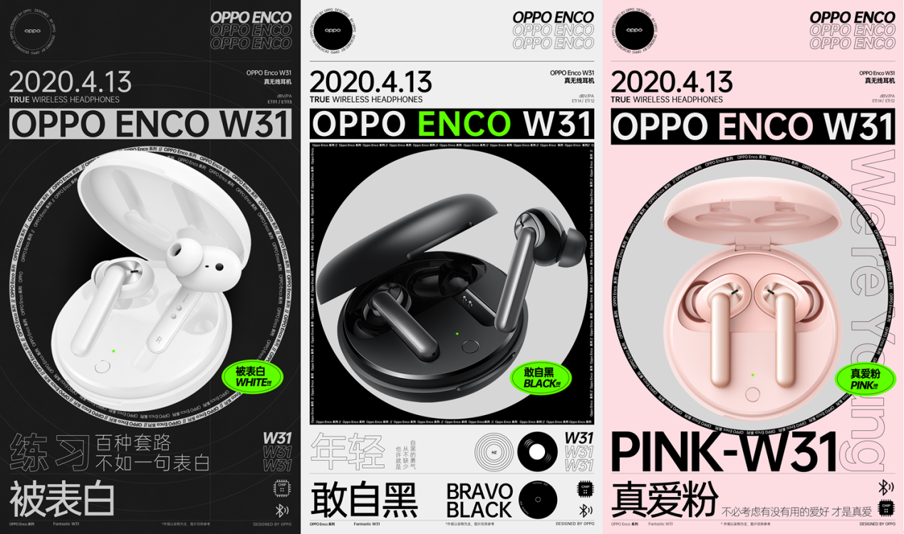 OPPO Enco W31真無線耳機(jī)將極簡設(shè)計(jì)美學(xué)與前沿科技完美糅合,化身潮流好物。遵循簡約小巧的設(shè)計(jì)理念,外殼圓潤輕巧,方便用戶隨身攜帶。擁有敢自黑、被表白、真愛粉三種配色可供選擇,滿足年輕人不同個(gè)性的表達(dá)。