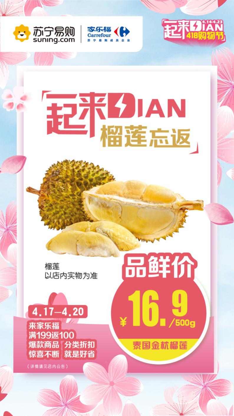 據(jù)有關(guān)方面透露,即將啟幕的“4.18一起來Dian”購(gòu)物節(jié),家樂福將加碼福利,推出重磅優(yōu)惠的同時(shí),奉上多款強(qiáng)勢(shì)優(yōu)質(zhì)生鮮爆品,勢(shì)要擊穿底價(jià)。以“水果之王”榴蓮為例,每斤16.9元的限時(shí)品鮮價(jià)。