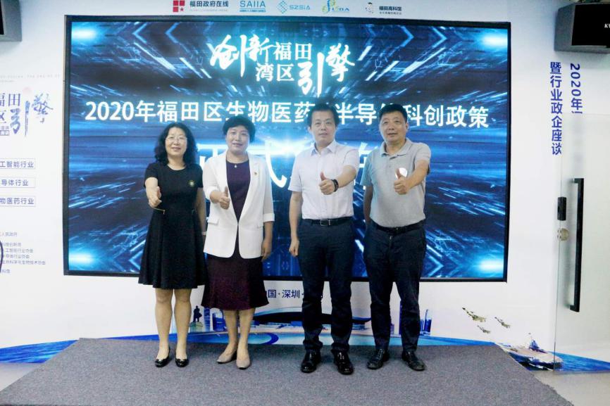 時春蕾書記、張忠暉局長、周斌會長、王艷梅所長聯(lián)合啟動“創(chuàng)新福田,灣區(qū)引擎”2020年福田區(qū)生物醫(yī)藥&半導體科創(chuàng)政策正式發(fā)布儀式。