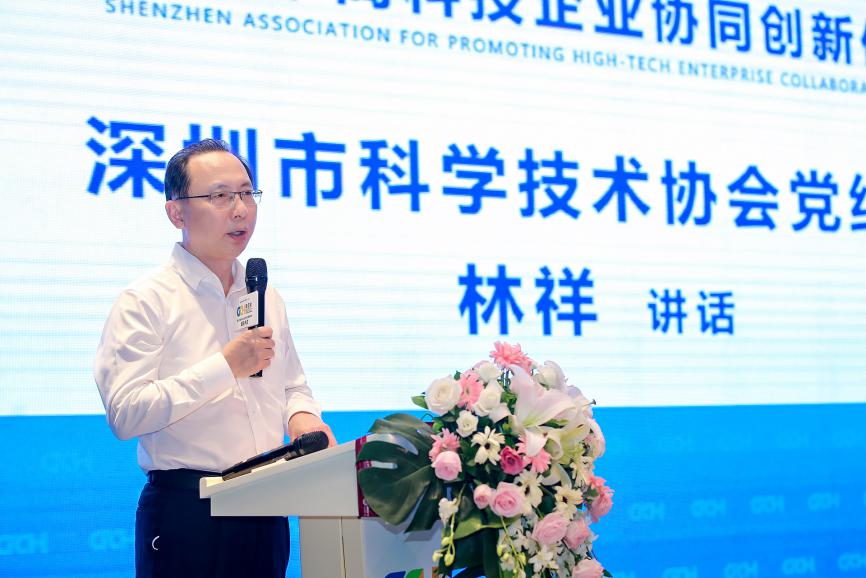 深圳市科學(xué)技術(shù)協(xié)會(huì)黨組書記、副主席林祥代表深圳市科協(xié)對(duì)高促會(huì)的成立表示熱烈的祝賀,向?yàn)樯钲谑邪l(fā)展作出貢獻(xiàn)的廣大科技工作者致以崇高的敬意,深圳市科協(xié)將圍繞中央、省委、市委的決策部署,在中國科協(xié)、省科協(xié)的指導(dǎo)下,按照雙區(qū)建設(shè)的要求,積極探索科技與經(jīng)濟(jì)相融合的新機(jī)制,形成大力促進(jìn)科技成果轉(zhuǎn)化的熱潮。希望高促會(huì)可以精準(zhǔn)發(fā)力,促進(jìn)深圳市科學(xué)普及與科技創(chuàng)新比翼齊飛,努力創(chuàng)建社會(huì)主義現(xiàn)代化強(qiáng)國的城市范例。
