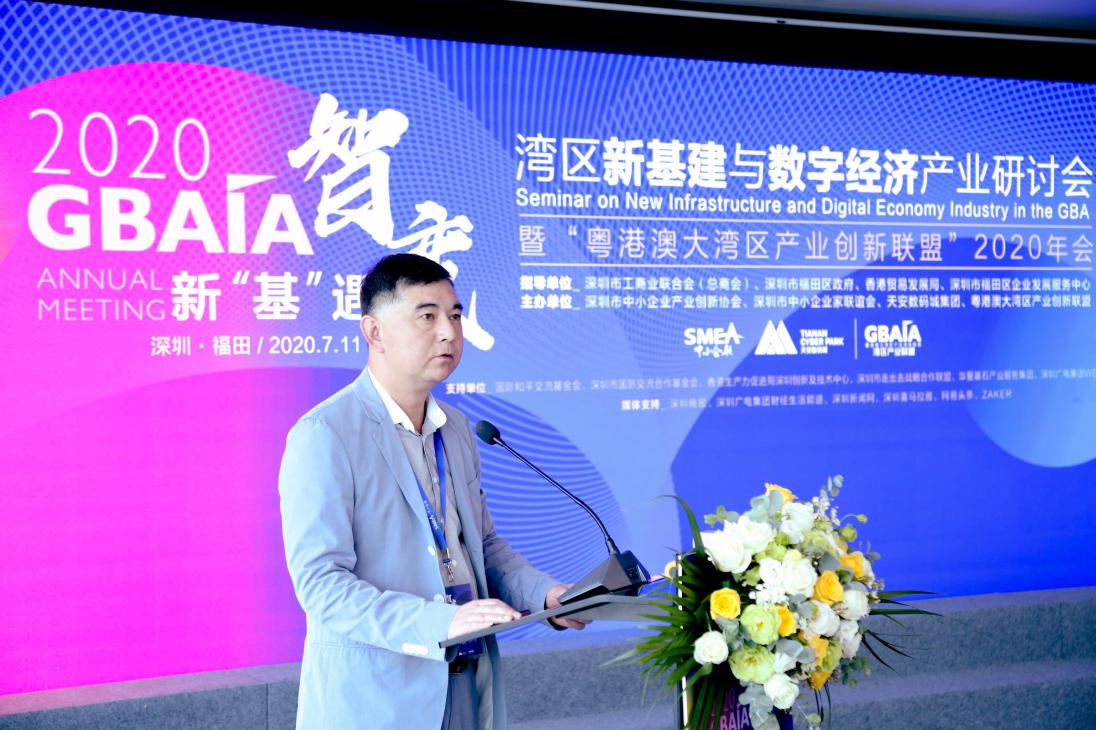 2020年7月11日,在深圳市工商聯(lián)合會(huì)(總商會(huì))、深圳市福田區(qū)政府、香港貿(mào)易發(fā)展局的指導(dǎo)下,由深圳市中小企業(yè)產(chǎn)業(yè)創(chuàng)新協(xié)會(huì)、深圳市中小企業(yè)家聯(lián)誼會(huì)、天安數(shù)碼城集團(tuán)、粵港澳大灣區(qū)產(chǎn)業(yè)創(chuàng)新聯(lián)盟聯(lián)合主辦的“灣區(qū)新基建與數(shù)字經(jīng)濟(jì)產(chǎn)業(yè)研討會(huì)”在深圳國際創(chuàng)新中心成功舉行。