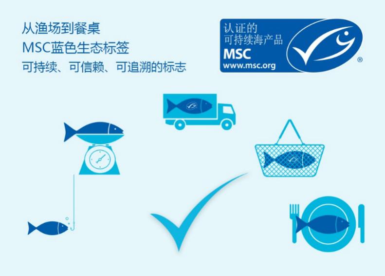 實際上,MSC是一個國際非盈利組織,制定與推廣國際市場廣泛認(rèn)可的可持續(xù)漁業(yè)與供應(yīng)鏈管理標(biāo)準(zhǔn)。只有整個捕撈和生產(chǎn)加工流程都符合MSC嚴(yán)苛的標(biāo)準(zhǔn),并且經(jīng)過了獨立的第三方評估機(jī)構(gòu)審核的海產(chǎn)品,才能打上MSC標(biāo)識。