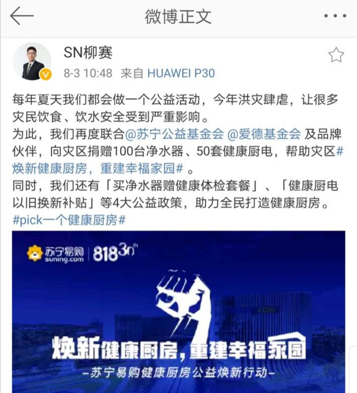 見(jiàn)圳客戶端·深圳新聞網(wǎng)2020年8月4日訊 昨日,蘇寧繼發(fā)布“戰(zhàn)汛六條”后,又聯(lián)合蘇寧公益、愛(ài)德基金會(huì)及老板電器、美的、A.O.史密斯、安吉爾、法迪歐、惠而浦等各大品牌,發(fā)起“煥新健康廚房,重建幸福家園”公益活動(dòng),面向?yàn)?zāi)區(qū)送出100臺(tái)凈水器、50套健康廚電,并向全民推出四大公益福利政策。