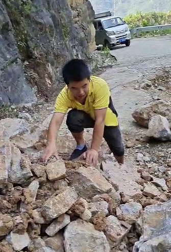 由于前期暴雨天氣,焦厚松車才開到半路,就看到前方的路有了滑坡,緊靠著崖壁的道路已經(jīng)垮了一半?!暗纛^還是前行?”焦厚松最終戰(zhàn)勝了猶豫,“答應(yīng)了用戶今天送到,不能就這樣放棄,先看看情況?!彼_始下車觀察路況,發(fā)現(xiàn)主要是碎石堵住了前方七八米的路程。“如果清理一些,車輛就能開過去?!闭f干就干,焦師傅隨后就開始徒手清理路上的石塊。
